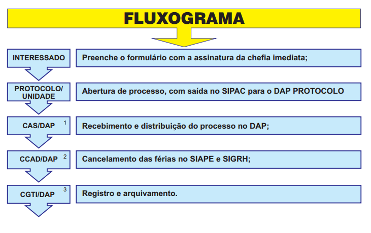 O Cancelamento de Férias ocorre quando o servidor perde o prazo da reprogramação ou não é cabível uma interrupção.